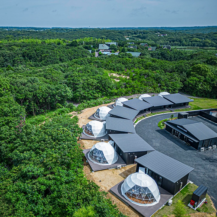 伊勢志摩国立公園に位置する、⾃然の恵み豊かな三重県志摩市に7棟のドーム型グランピング「伊勢志摩BASE」がOPEN。