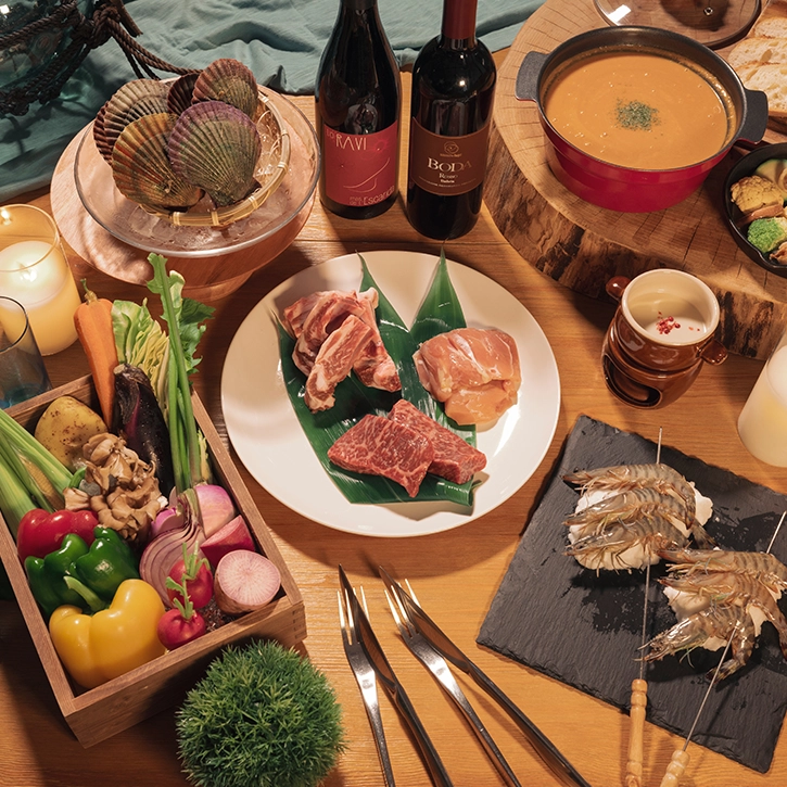 日本三大和牛として知られる松阪牛をメインに、英虞湾で獲れた海の幸などBBQスタイルならではのお洒落なスキレット料理やスープなど、地元産の食材をたっぷり使用した伊勢志摩BASEならではのBBQメニューをご提供しております。